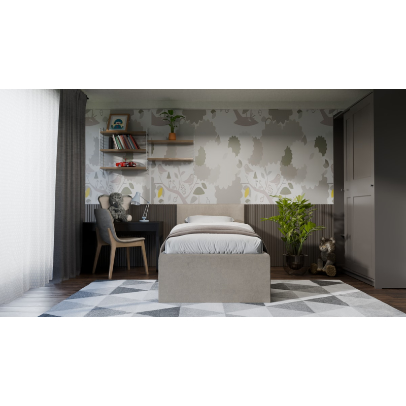 Łóżko dziecięce tapicerowane Wiki 90x200 cm to stylowy i bezpieczny wybór do pokoju malucha lub nastolatka. Miękka tapicerka, zagłówek i trwałość.